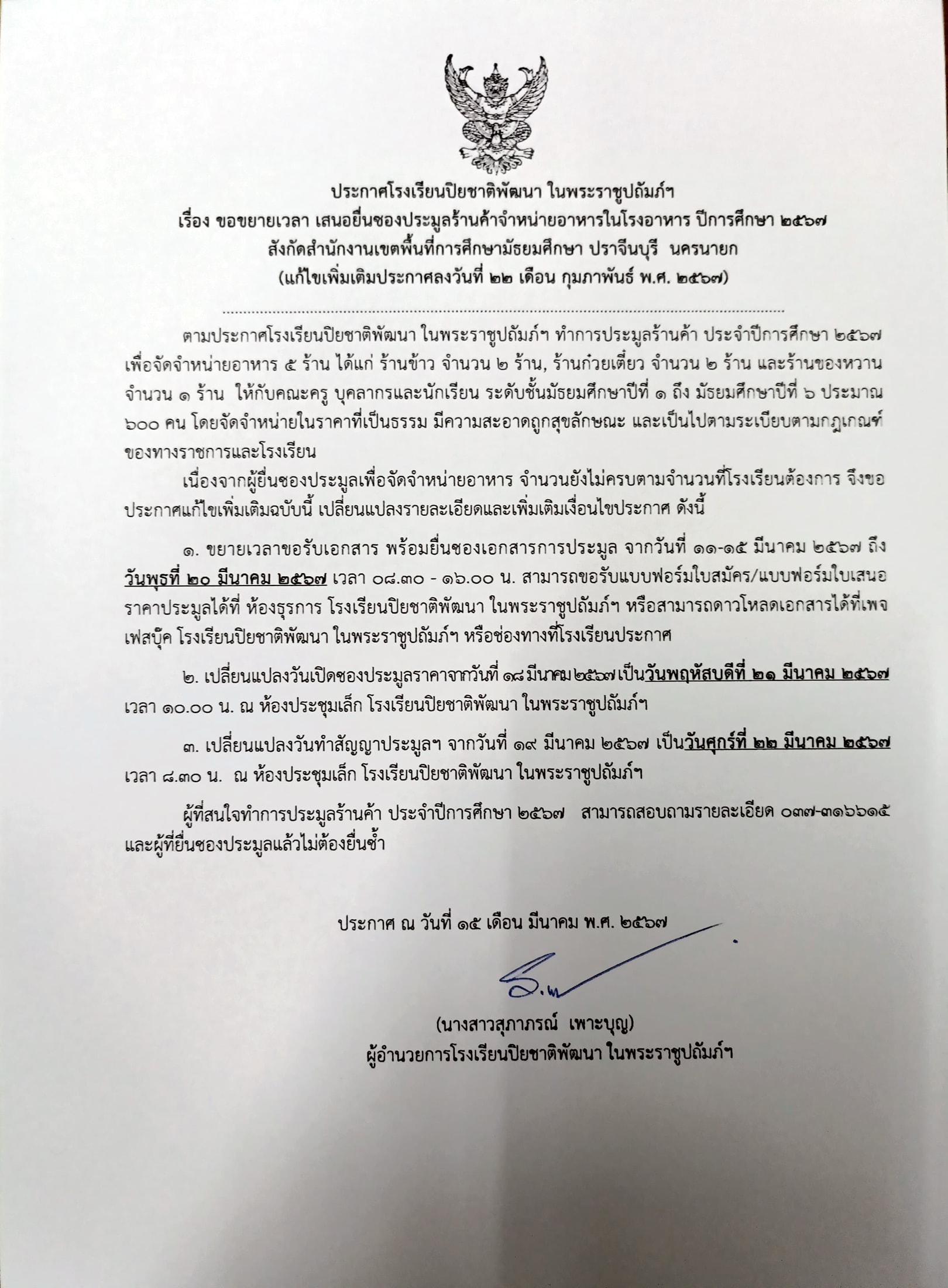 ยื่นซองประมูลร้านค้าโรงอาหาร ประจำปีการศึกษา 2567 https://www.facebook.com/share/p/kkhx8tG1mfHrSuFw/?mibextid=Nif5oz