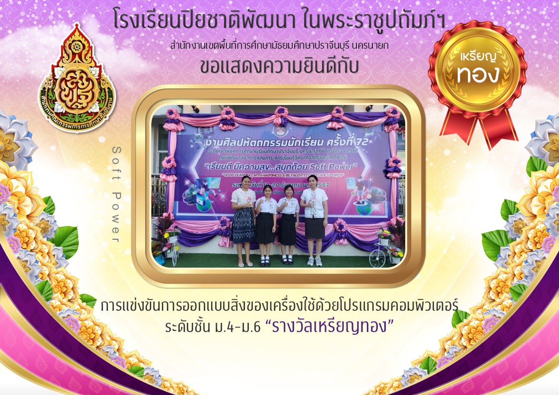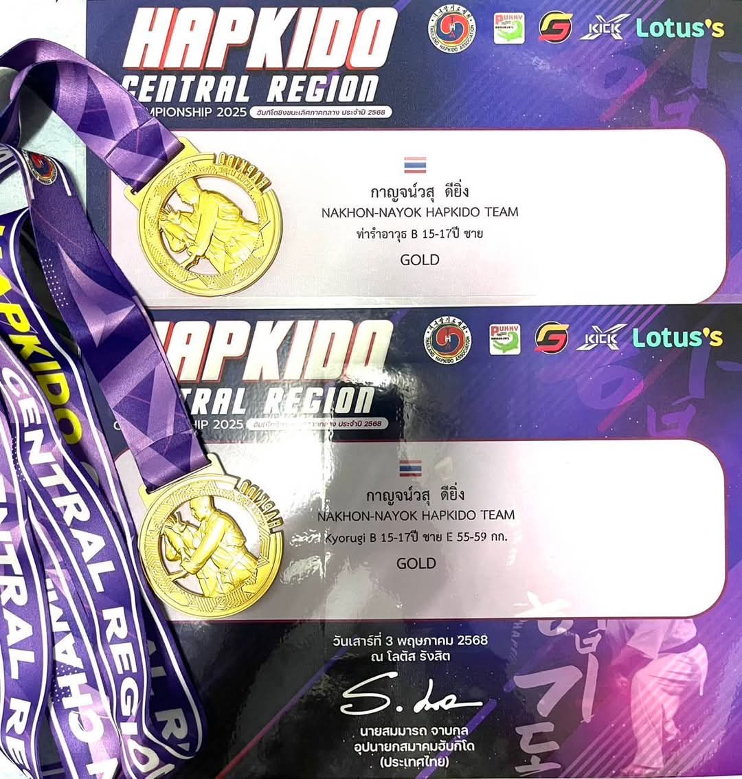 ชื่อผลงาน : ได้เข้าร่วมการแข่งขันกีฬา ฮันกิโดชิงชนะเลิศภาคกลาง ประจำปี 2568(Hapkido Central Region Championship 2025) ในวันเสาร์ที่ 3 พฤษภาคม 2568 ณ โลตัส รังสิต ได้รับรางวัล 1 เหรียญทอง ???? ประเภท Kyorugi B รุ่น 15-17 ปีชาย E55-59 กก. 1 เหรียญทอง ประเภท ท่ารำอาว