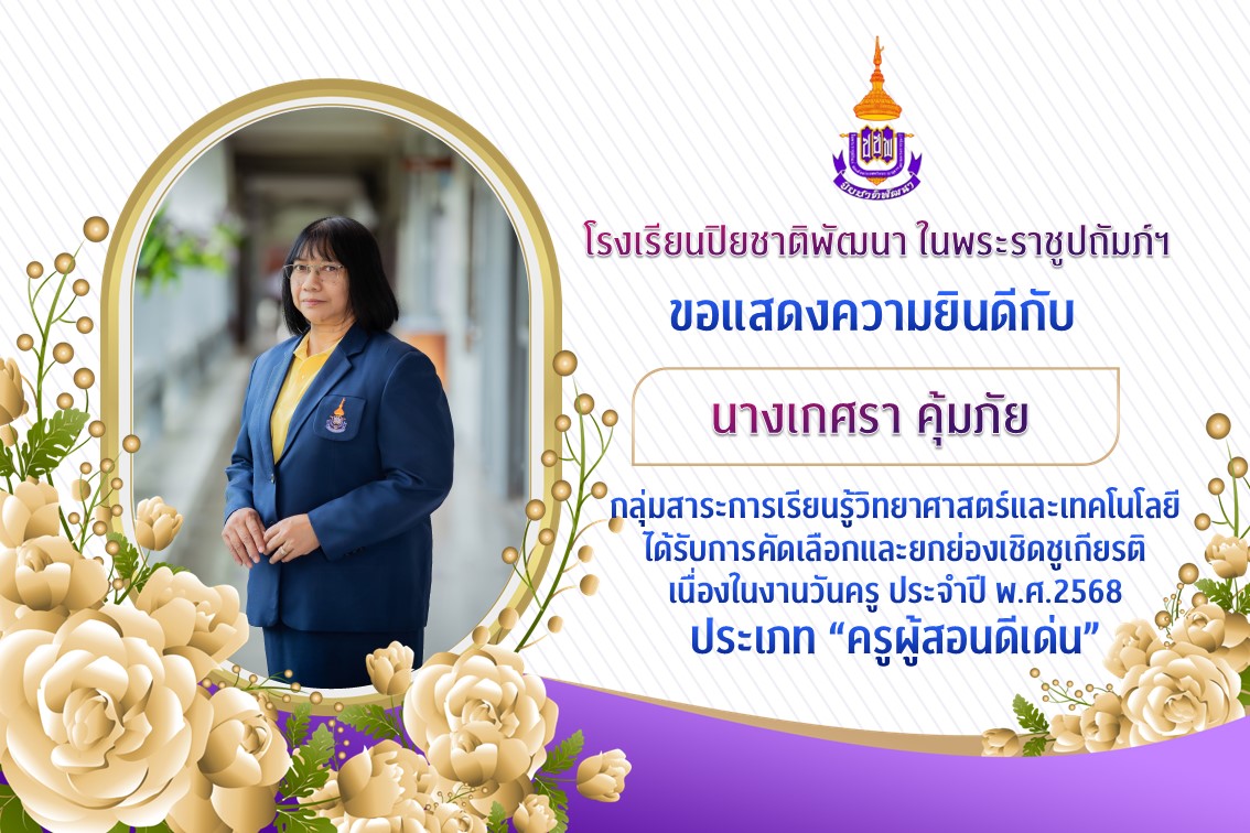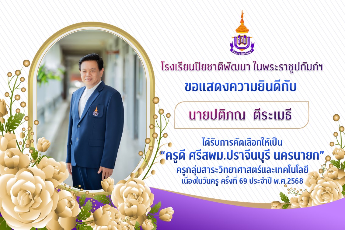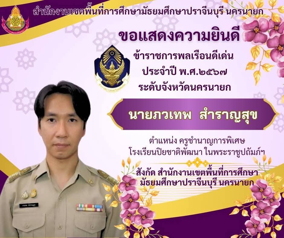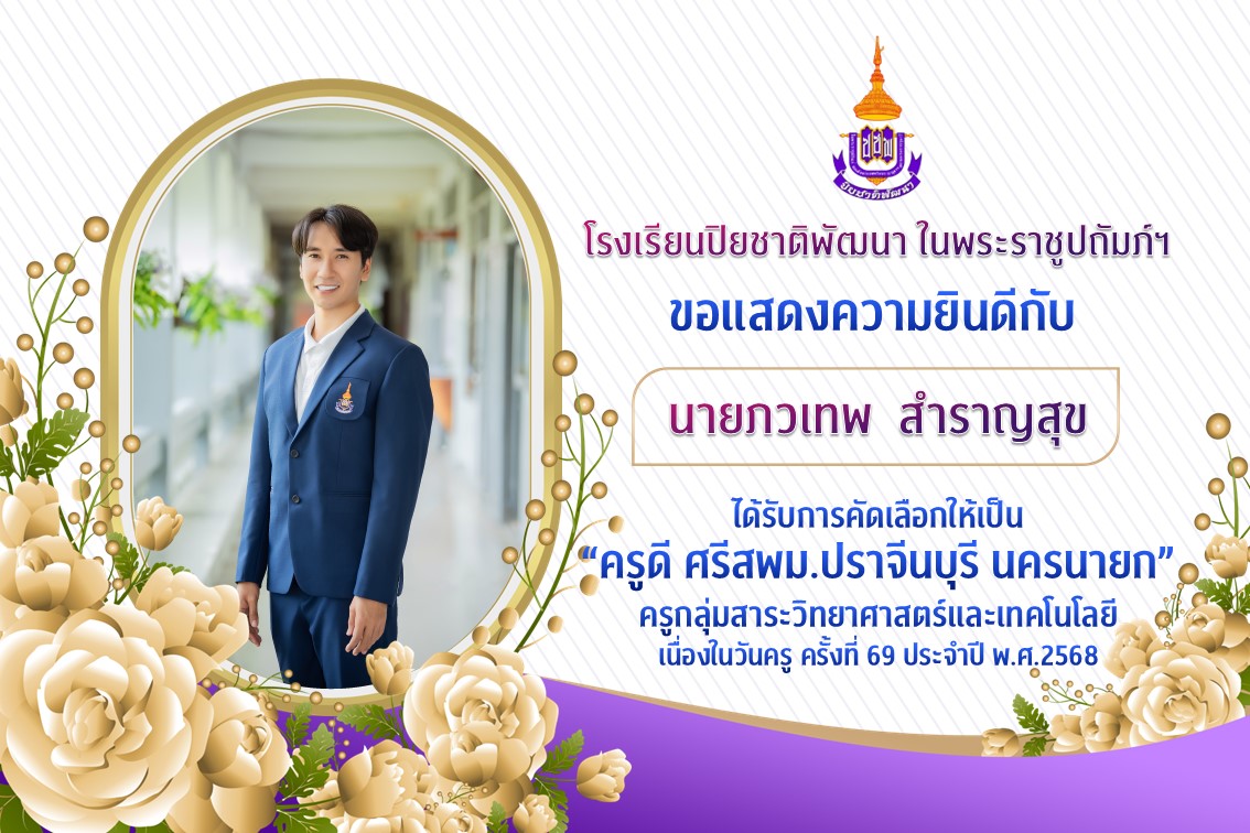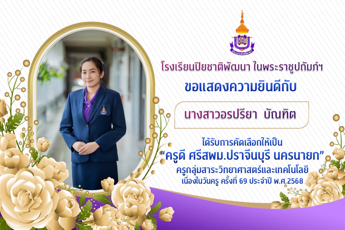 ได้รับการคัดเลือกให้เป็น “ครูดี ศรีสพม.ปราจีนบุรี นครนายก” ครูกลุ่มสาระวิทยาศาสตร์และเทคโนโลยี เนื่องในวันครู ครั้งที่ 69 ประจำปี พ.ศ.2568