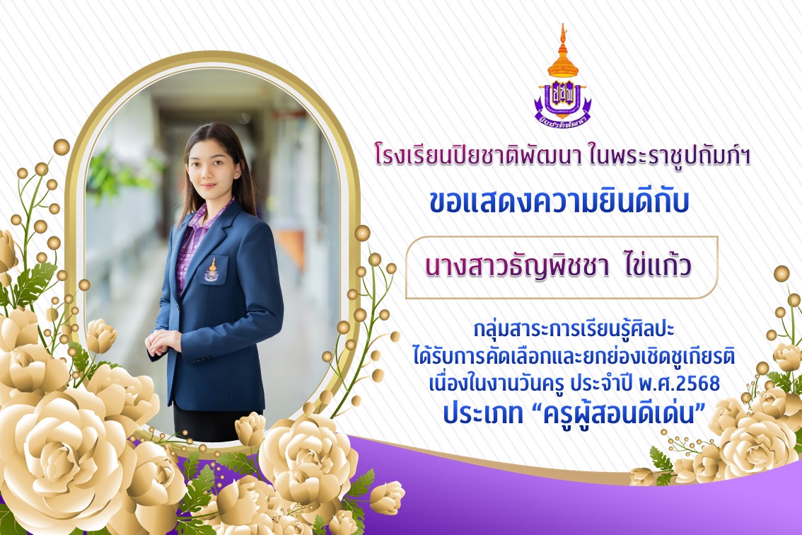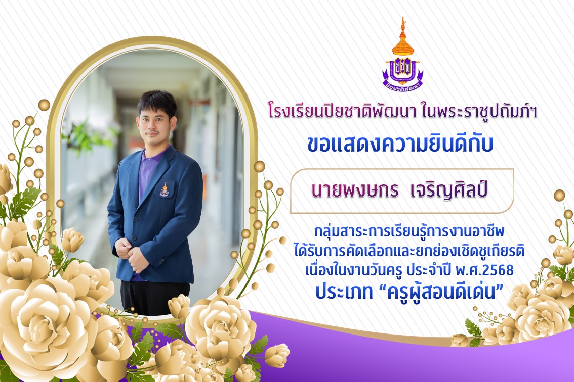 ได้รับการคัดเลือกและยกย่องเชิดชูเกียรติ เนื่องในงานวันครู ประจำปี พ.ศ.2568 ประเภท “ครูผู้สอนดีเด่น”